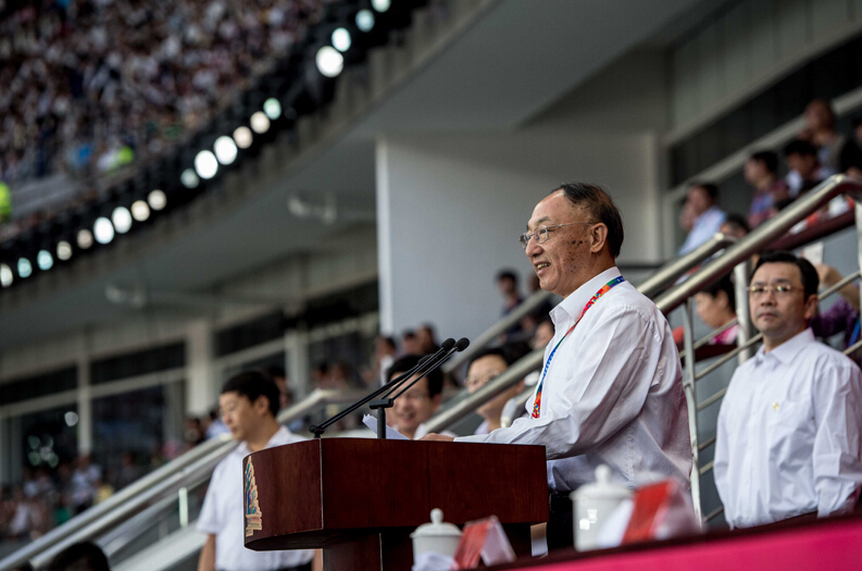 10月18日,第一届全国青年运动会在福建省福州市隆重开幕。中共中央政治局委员、国务院副总理刘延东出席开幕式并宣布开幕。新华社记者张国俊摄